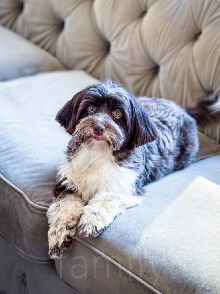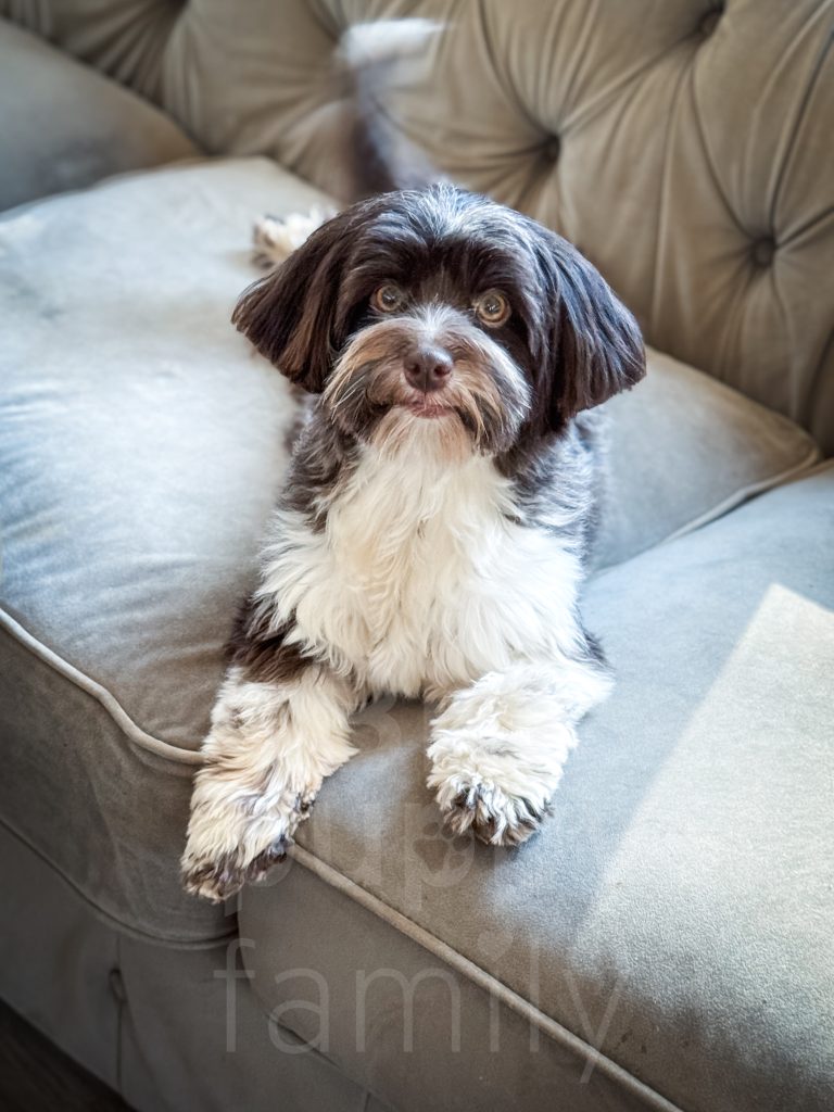 Chia is our brown tuxedo Havanese mama. She is super goofy and affectionate as well as beautiful. Chia weighs ten lbs.
