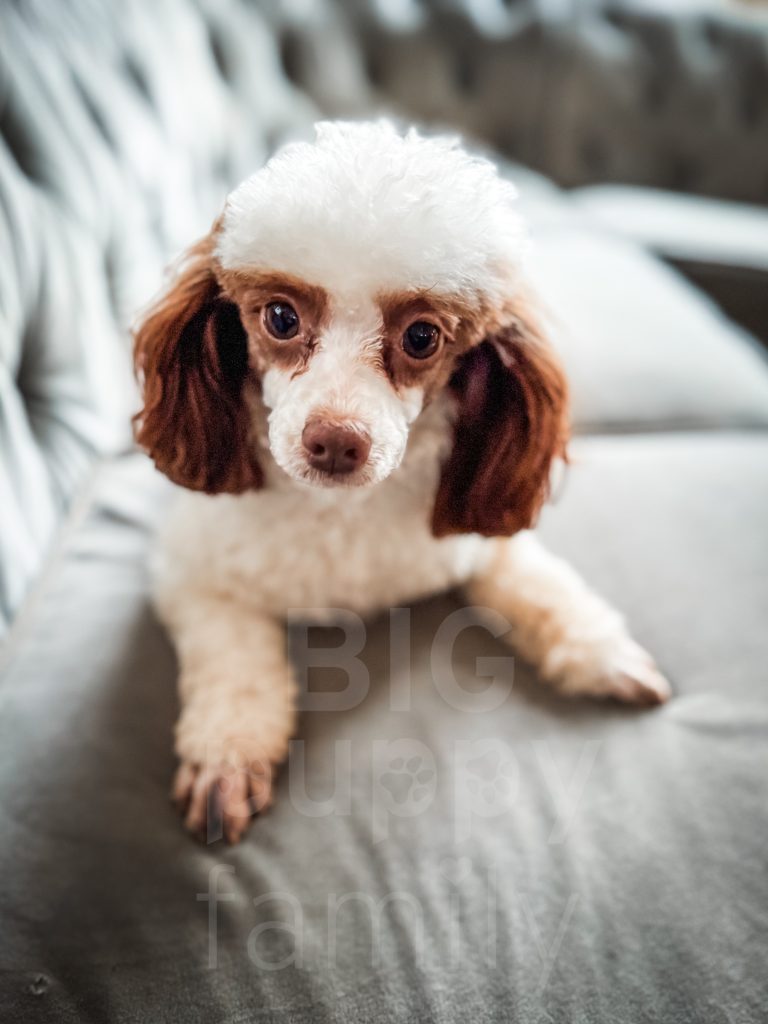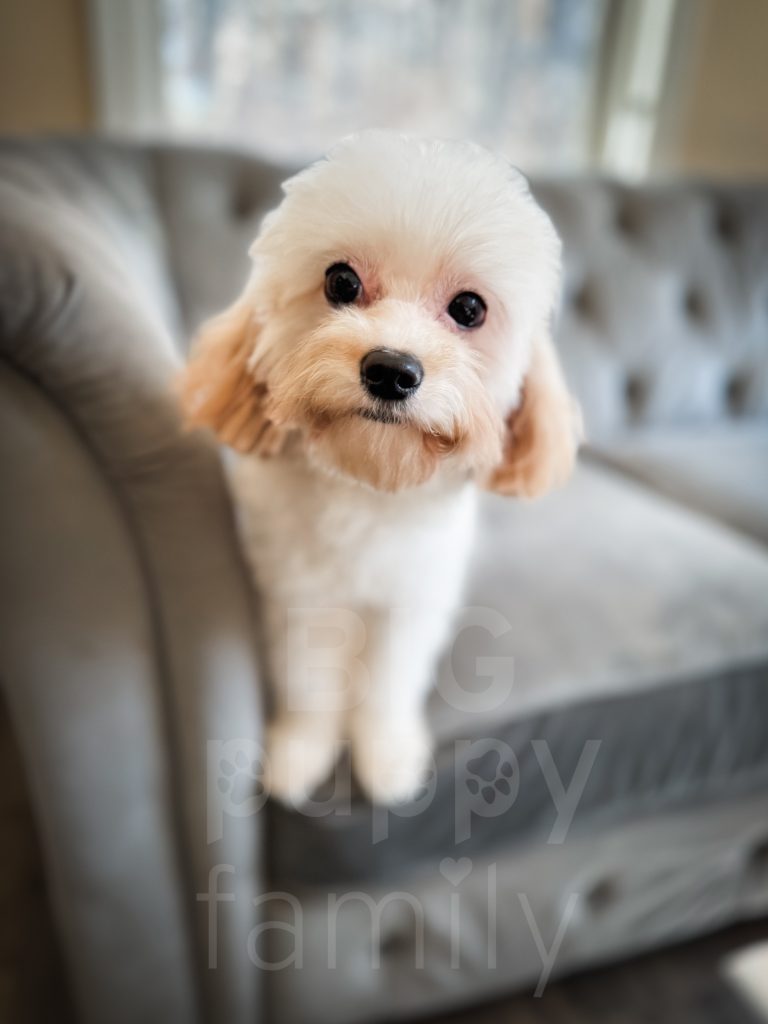 Nellie is from Jewel and Honeydew. She inherited all the toy genes and is only 6/7 lbs full-grown. Nellie was an absolute breeze to potty train. She has her mom’s intelligence and her dad’s sweet nature.