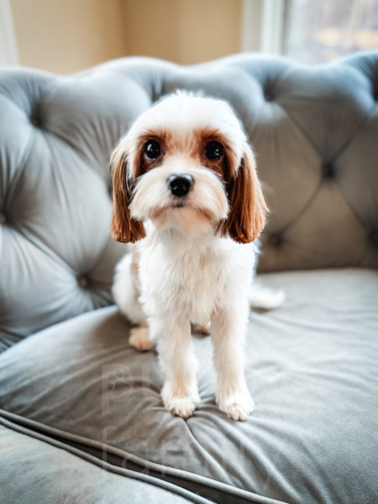 Lizzy is an adorable toy-sized (8/9 lbs) F1 phantom abstract cavapoo. Lizzy is a very happy girl and absolutely loves everyone. Lizzy is from our first cavalier stud, Cooper, and a friend’s phantom poodle. We are very excited to meet Lizzy’s first puppies this year.