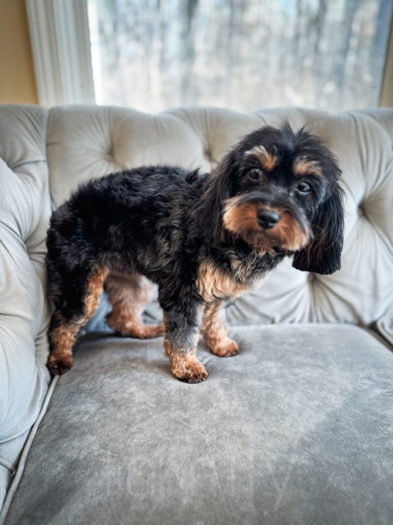 Susie is just the cutest! She is a teeny tiny and adorable 9-lb adult Schnauzer we added to our program in fall of 2025. We are hopeful that we will have toy schnoodle puppies in 2026.
