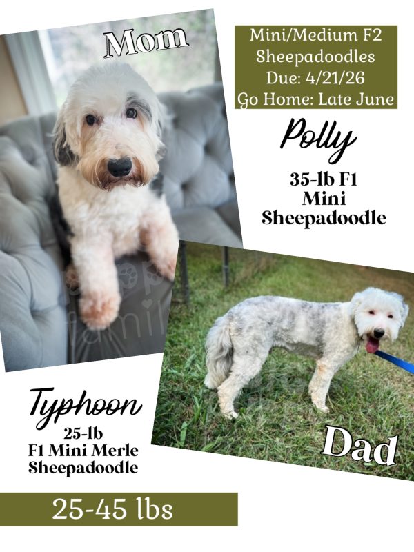 Polly and Ty are expecting F2 Mini/Medium Sheepadoodles due around 4/21.